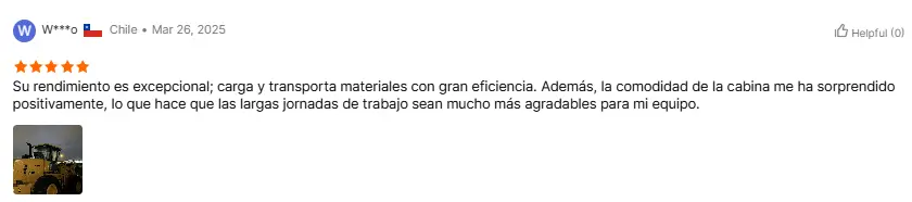 ரஷ்யாவைச் சேர்ந்த வாடிக்கையாளர் 5 டன் லோடரைப் பெற்றவுடன் உடனடியாக சோதனை ஓட்டத்தை எடுத்தார். அவர்கள், "இந்த ஏற்றி நான் எதிர்பார்த்ததை விட இன்னும் சூழ்ச்சி செய்யக்கூடியது. இது எந்த அதிர்ச்சியும் இன்றி சீராக இயங்குகிறது." இதை எங்கள் முதலாளியும் உறுதிப்படுத்தினார். உங்கள் விற்பனை பதில்கள் மிகவும் உடனடி மற்றும் பொறுப்பானவை. நீங்கள் நம்பகமான பங்குதாரர்.